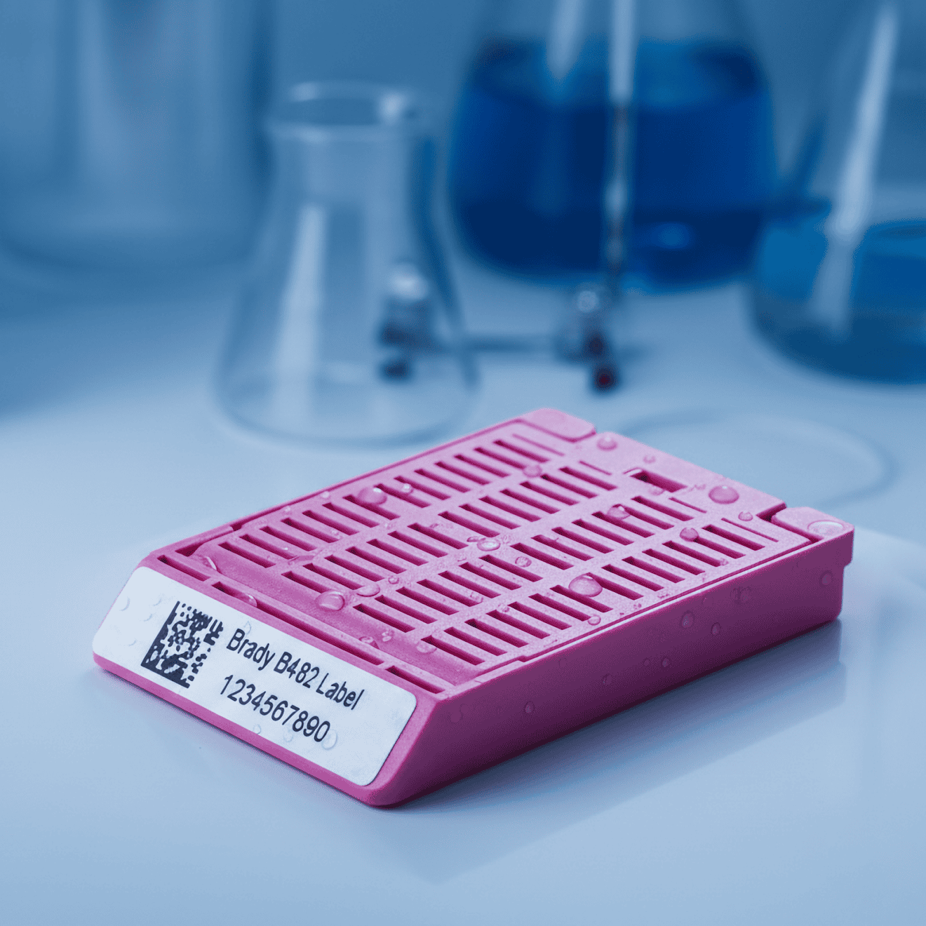 Vysoká odolnost vůči etanolu, xylenu, izopropanolu a dalším běžným laboratorním činidlům. Text i čárové kódy zůstávají neporušené.